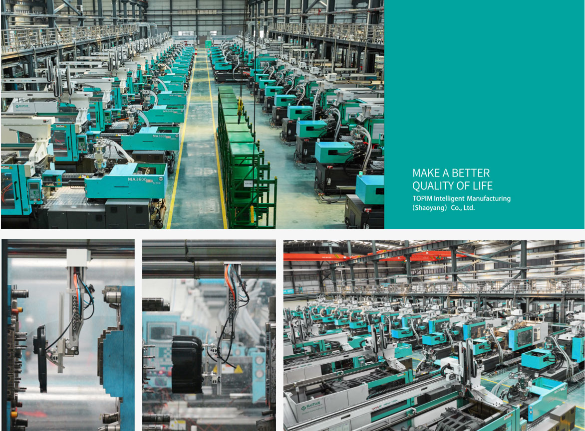 注塑車間每臺注塑機均匹配有縱走式五服機械手、自動送料系統(tǒng),采用機械手取件、自動剪水口、自動分揀入庫,實現(xiàn)了人機分離、料機分離生產(chǎn)方式,智能集中供料系統(tǒng)可根據(jù)指令輸送原料到指定通道,突破了傳統(tǒng)中央供料方式顏色單一、轉(zhuǎn)線慢的瓶頸。