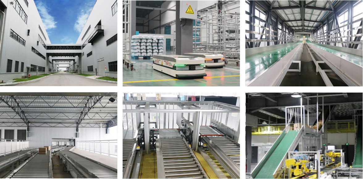 車間內(nèi)部采用一個流的生產(chǎn)模式,配備有全自動部品輸送線,由連續(xù)式升降機和傳送帶組成,將配件、組件直接輸送到產(chǎn)線;全自動包材輸送線,直接輸送包材從倉庫到產(chǎn)線;全自動成品輸送線,輸送成品至倉庫進行碼垛、打袋、纏膜、入庫等工序。
