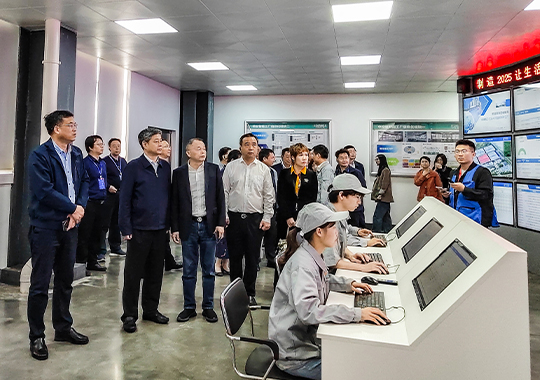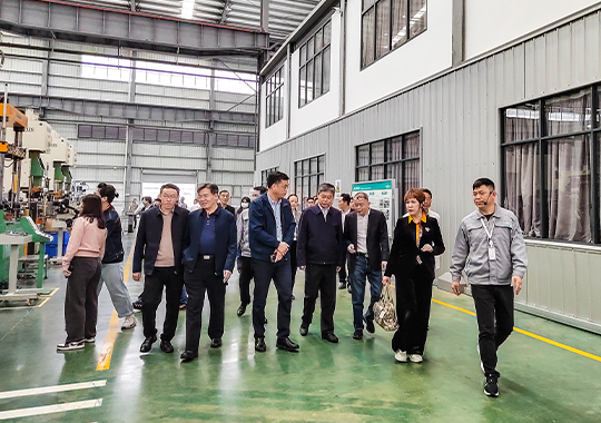 圖為邵陽市委書記嚴華陪同院士、專家一行蒞臨拓浦精工智能制造(邵陽)有限公司參觀調(diào)研指導(dǎo)工作。
